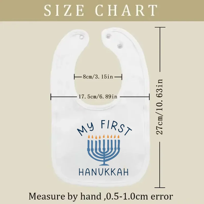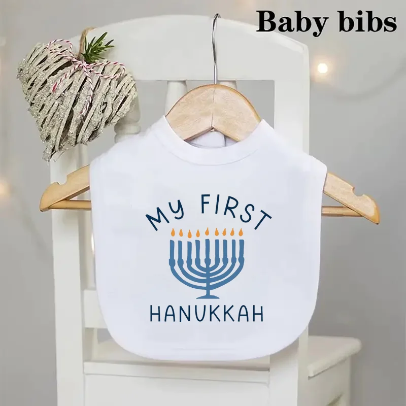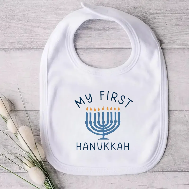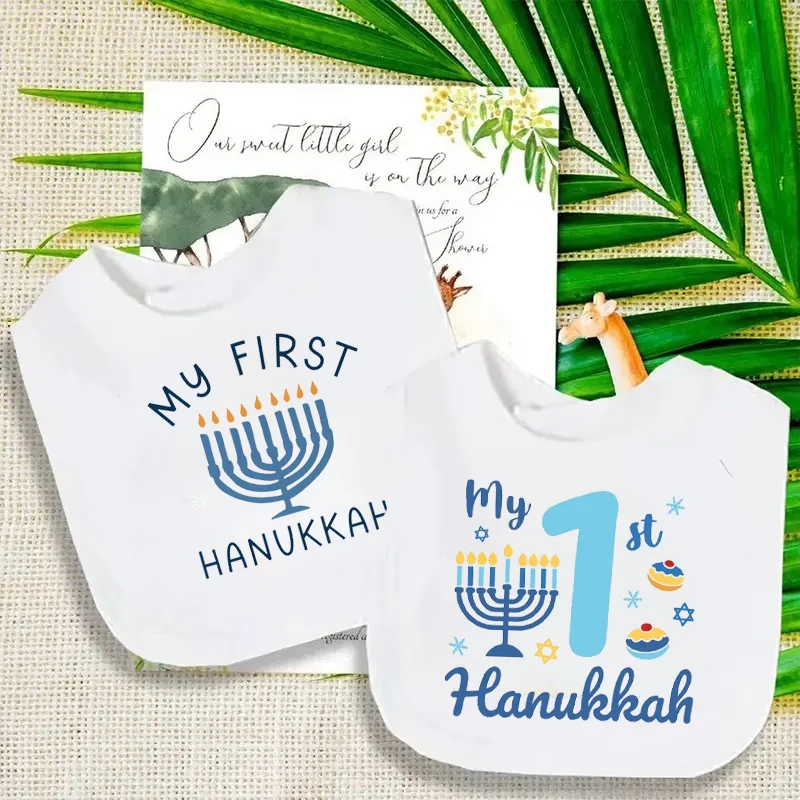 This baby bib is designed to celebrate a child’s first Hanukkah in a joyful way. It features festive Hanukkah-themed elements perfect for the Festival of Lights. The design highlights traditional symbols that reflect Jewish heritage. This bib is suitable for both baby boys and girls. It adds a special touch to Hanukkah meals and family gatherings. The lightweight material allows for comfortable wear during celebrations. It helps keep clothing clean while enjoying holiday foods. This bib also works well as part of Hanukkah party decorations. It is ideal for photos, keepsakes, and memorable moments. The design makes it a thoughtful gift for new parents. It pairs well with other Hanukkah party supplies and decor. This first Hanukkah bib brings warmth, tradition, and joy to a baby’s holiday celebration.