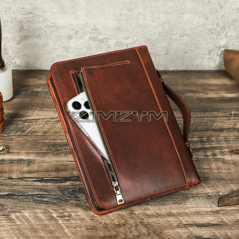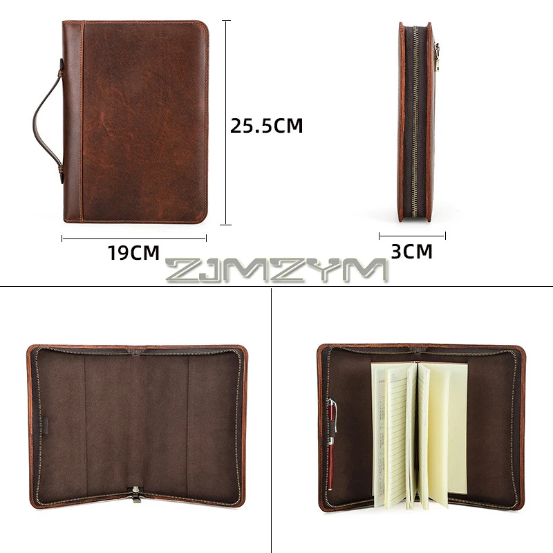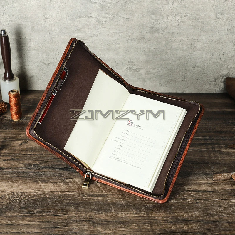 This men’s leather Bible cover is designed to protect and organize your Bible or notebook. The zippered closure keeps contents secure during travel or daily use. Made from durable leather material, it offers a classic and masculine appearance. The A5 size fits many Bibles, planners, and notebooks comfortably. A built-in handle allows for easy carrying on the go. The back pocket provides extra storage for notes, pens, or bookmarks. This cover helps protect pages from wear, dust, and damage. Its practical design is ideal for church, Bible study, or personal devotion. The smooth leather finish adds a refined and professional look. It is suitable for everyday use or special occasions. This Bible cover makes a thoughtful gift for men of faith. It combines functionality, durability, and timeless style in one essential accessory.
