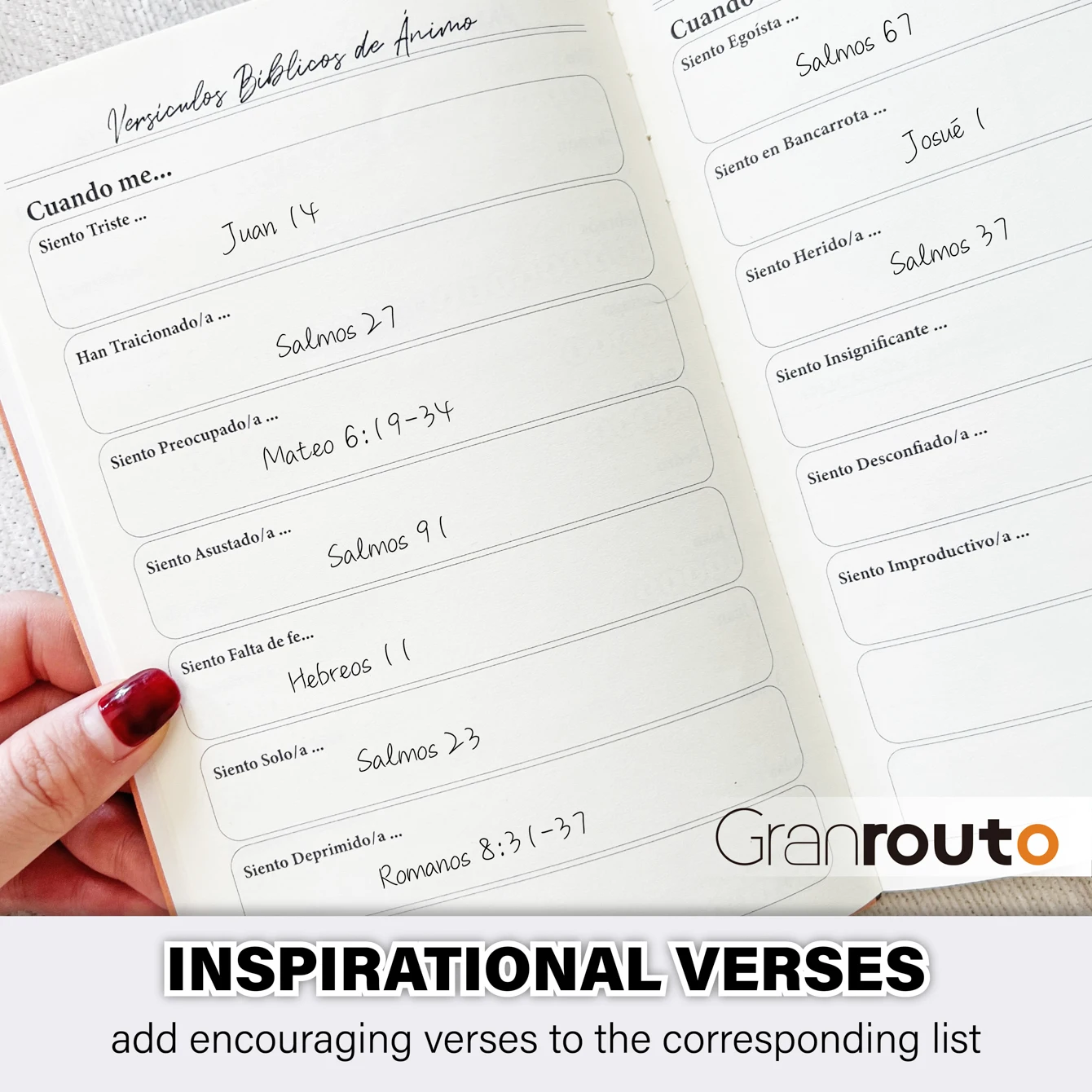 This Spanish SOAP Bible study journal is designed to deepen scripture understanding through reflection. The SOAP method guides readers through Scripture, Observation, Application, and Prayer. It encourages thoughtful engagement with God’s Word in Spanish. The journal provides space for daily devotion and meaningful prayer. Its structured format helps build consistent Bible study habits. This notebook is suitable for both men and women of faith. It works well for personal study or group devotionals. The design supports spiritual growth and focused reflection. Each page allows room for writing insights and prayers. The journal is ideal for quiet time, church study, or daily inspiration. It makes a thoughtful religious gift for any occasion. This Spanish devotional journal is a practical and uplifting tool for faith-centered living.