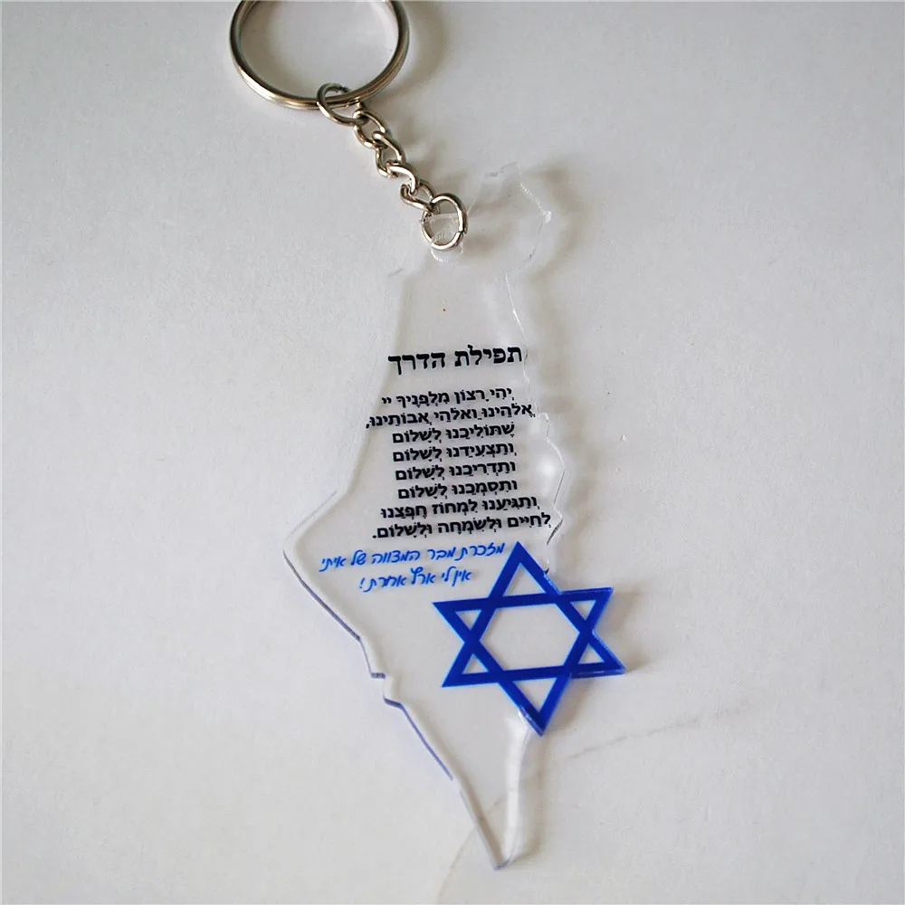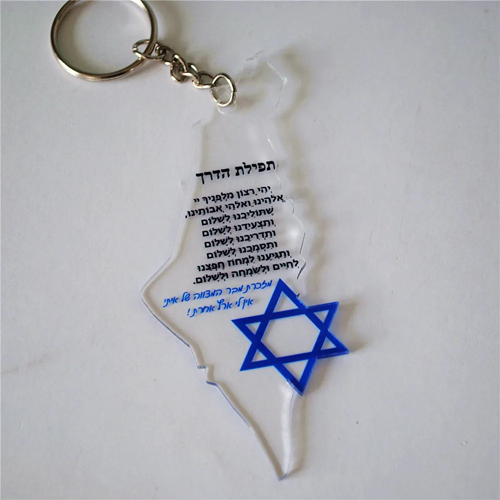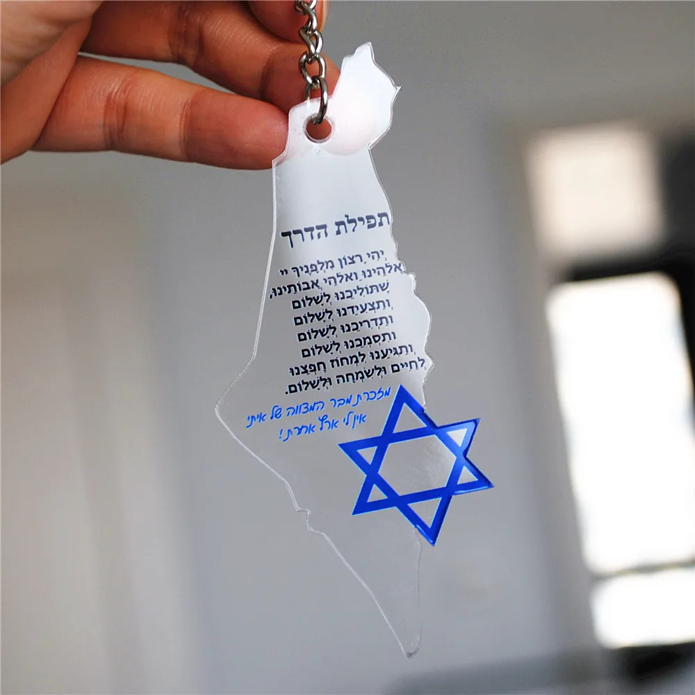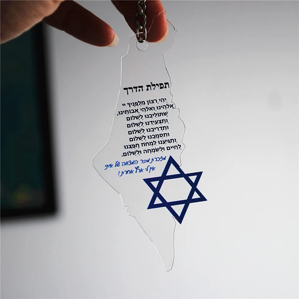 This Star of David acrylic keychain is a meaningful Jewish faith keepsake. The design features a Hebrew-inspired Israel map with a Star of David symbol. It represents faith, heritage, and spiritual connection. The lightweight acrylic material is durable and long-lasting. Its compact size makes it easy to carry daily. This keychain works well as a Bar or Bat Mitzvah favor. It is also suitable for wedding guest gifts or special events. The design reflects gratitude, prayer, and tradition. The clear acrylic finish gives it a clean and modern look. It serves as a thoughtful reminder of faith and identity. This keychain is practical while holding deep symbolic meaning. It makes a meaningful gift for religious celebrations and milestones.